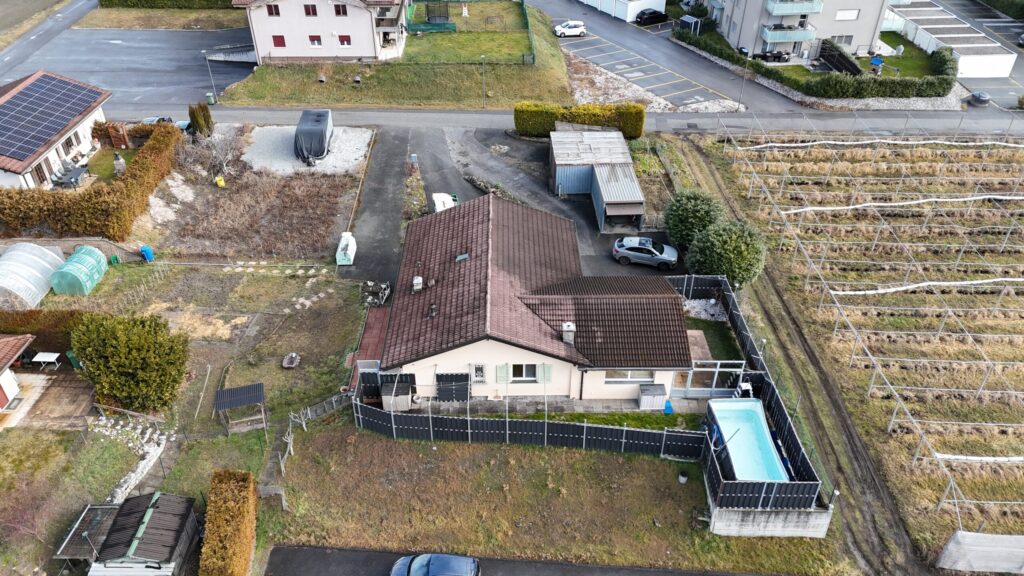 La villa dispose d’une surface habitable d’environ 220 m², implantée sur une grande parcelle de 1’139 m², offrant espace, intimité et potentiel.
