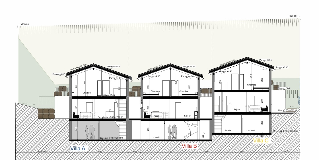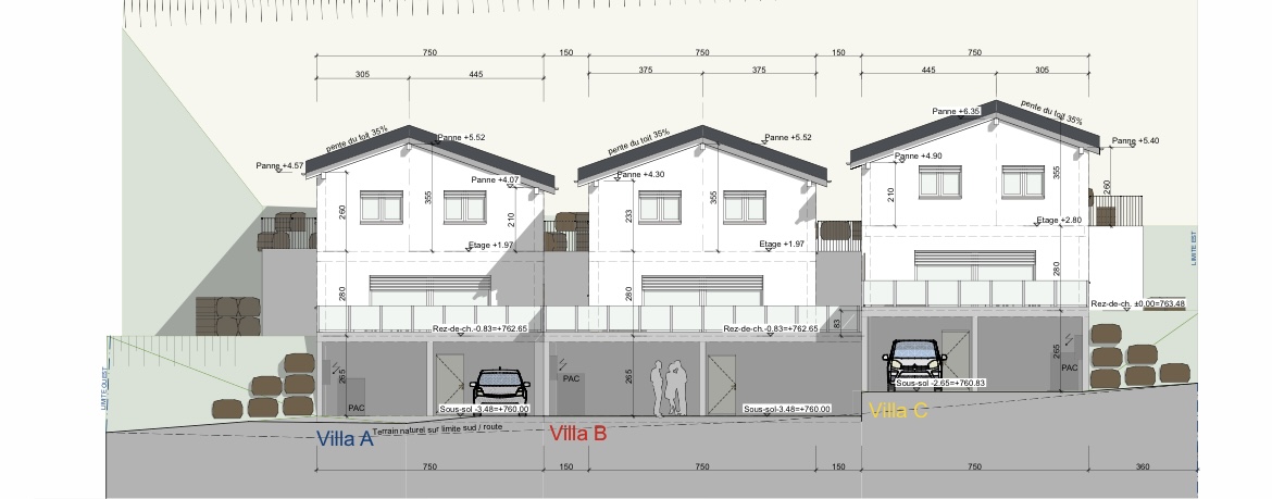 Au sous-sol 39.75 m2 + couvert à voitures (36 m2) :